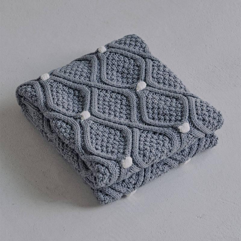 Cozy Chunky Knit Blanket with Cute Pompons for Home Décor