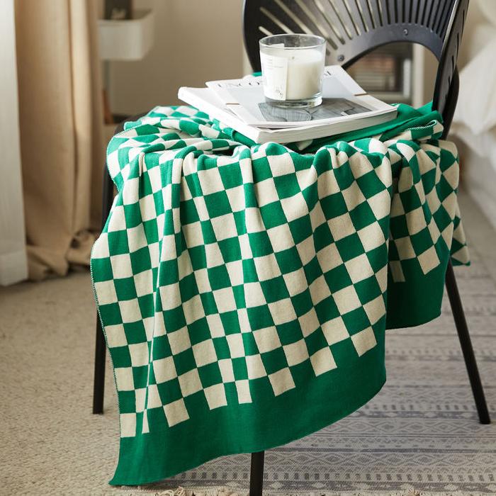 Cozy Checkerboard Plaid Cotton Knitted Blanket for Home Décor