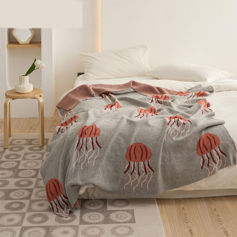 Kawaii Jellyfish Pattern Cotton Knitted Blanket