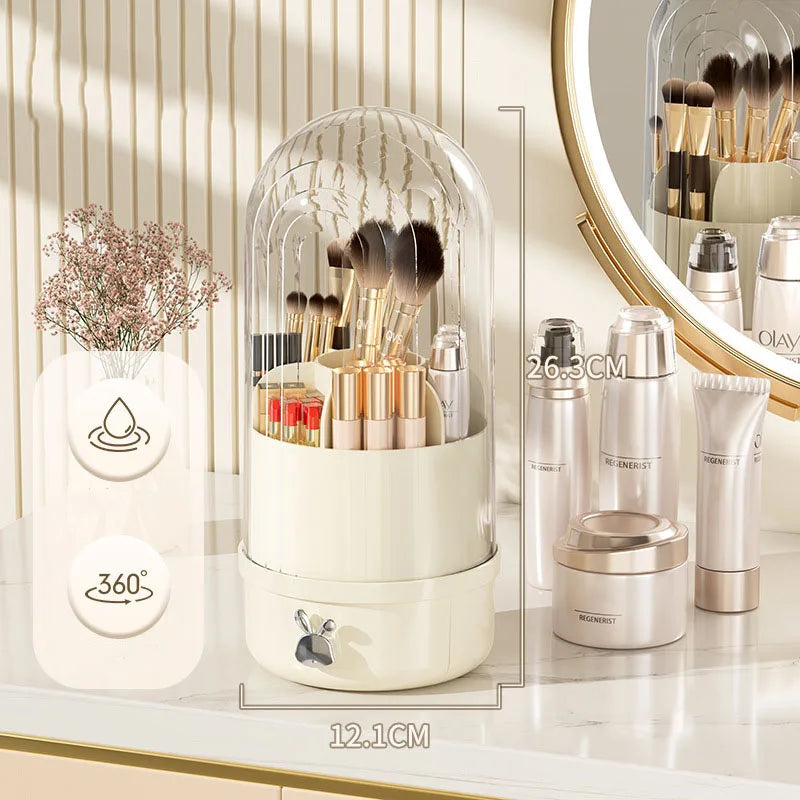 Discover the perfect blend of style and functionality with our 360 Rotating Makeup Brush Holder with Drawer. This innovative organizer not only keeps your brushes neatly arranged but also adds a touch of sophistication to your vanity. Featuring a clear acrylic cover and a smooth rotating base, this holder ensures your brushes stay clean, accessible, and perfectly organized. Ideal for any makeup enthusiast, this versatile container enhances your beauty routine while maintaining a sleek, modern look.Smart Storage with a Dustproof Design