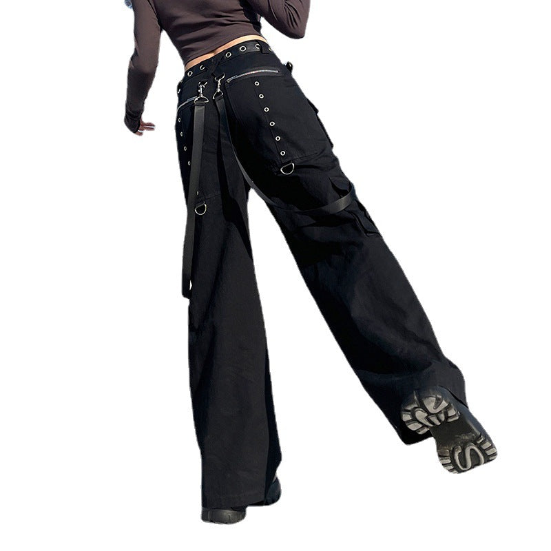 Printed Dark Woven Pants Street Hip-Hop Ribbon Wide-Leg Pants Casual Pocket Trousers