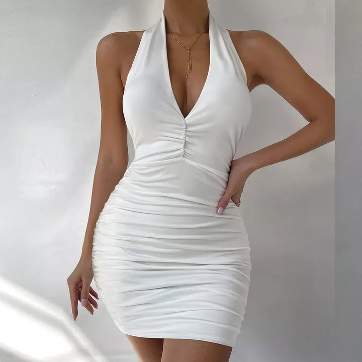 Step into a world of sophisticated allure with our Summer Sexy Halter Ruffle Mini Dress. Perfectly blending elegance with a hint of playfulness, this dress is your ultimate companion for evening parties and club nights. Embrace your inner glamour as you make a statement in this stunning attire.Product Features
