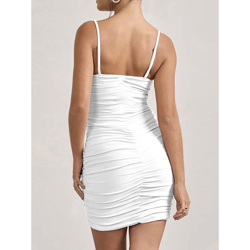 The dress features a flattering sweetheart neckline and spaghetti straps, creating a look that's both chic and timeless. The high-stretch synthetic fiber blend of cotton, polyester, and spandex ensures a snug yet comfortable fit that adapts to your body shape. With its above-knee length and pleated silhouette, this dress promises an elegant and sensual appearance.Product Features