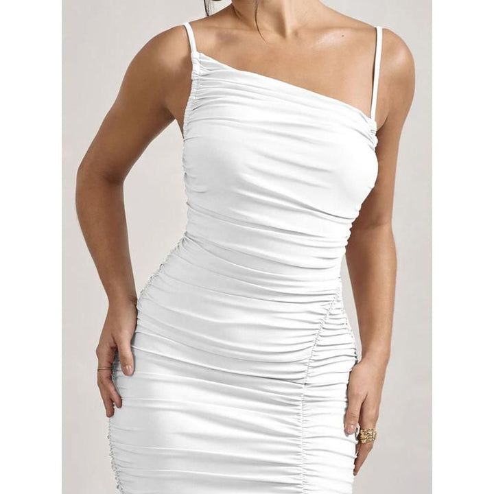 What sets this dress apart is its timeless design and versatility. Ideal for a variety of occasions, from a fun night out with friends to a sophisticated evening event, its solid pattern and pleated style ensure you're always the center of attention. The blend of cotton, polyester, and spandex offers both comfort and durability, making it a staple in your wardrobe for seasons to come.Make It Yours Today!