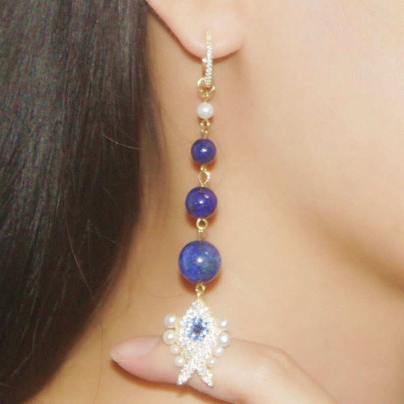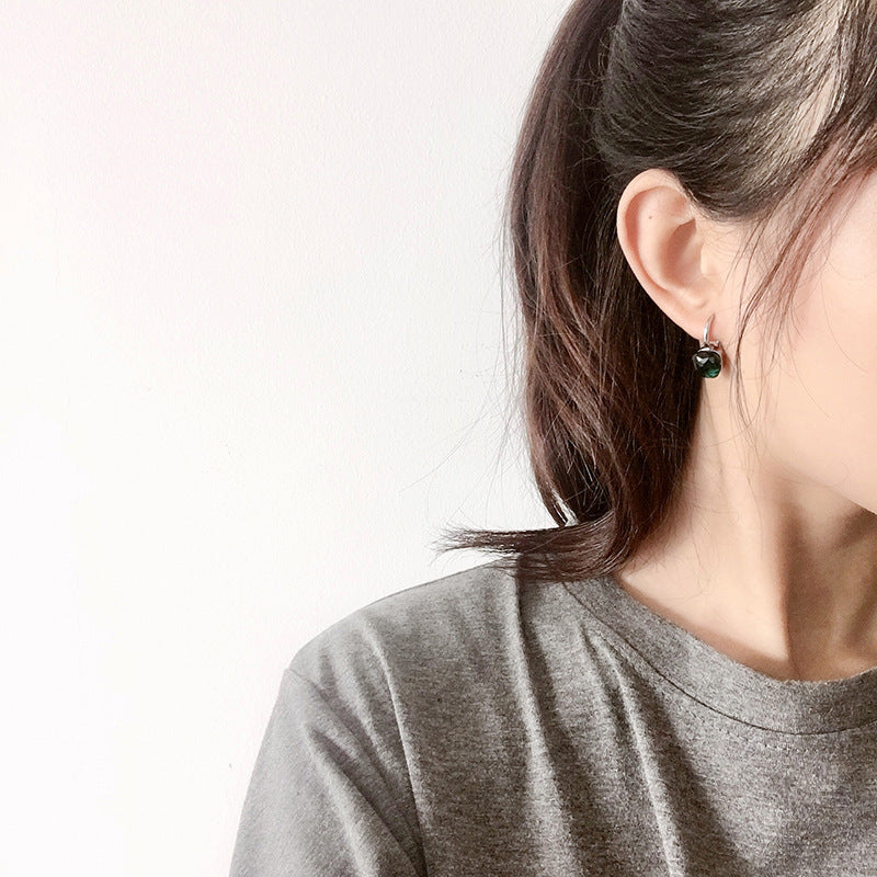 Female Diamond Green Pine Lapis Lazuli Small Fish Ear Ring