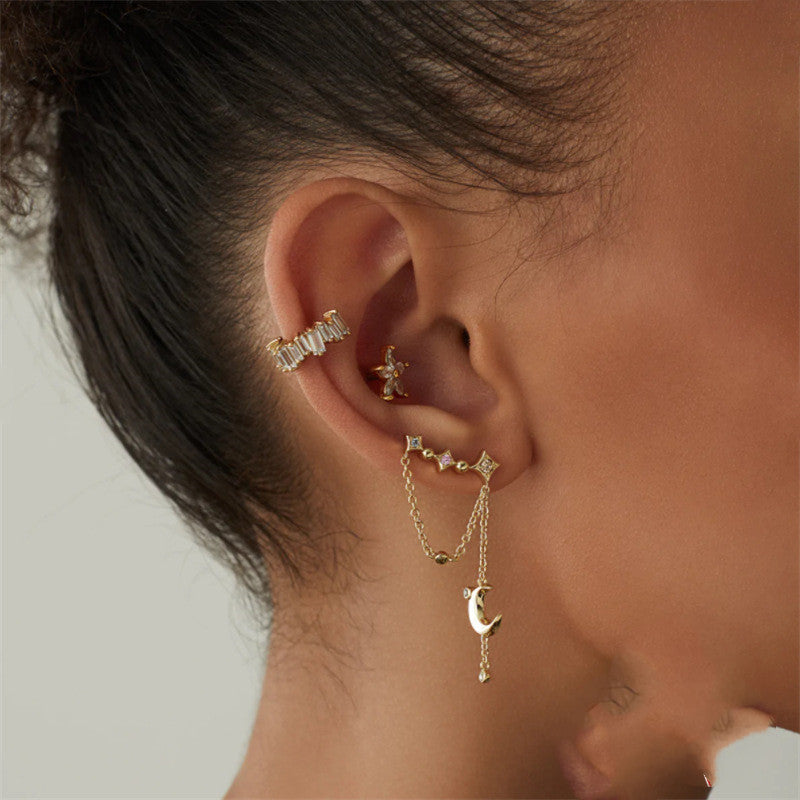 Sterling Silver INS Star Moon Tassel Ear Clip