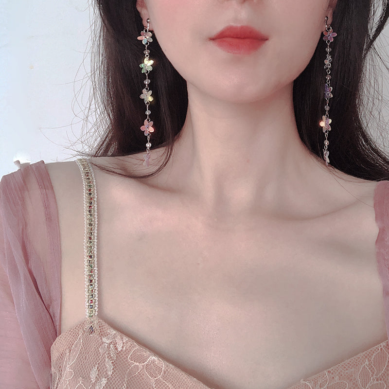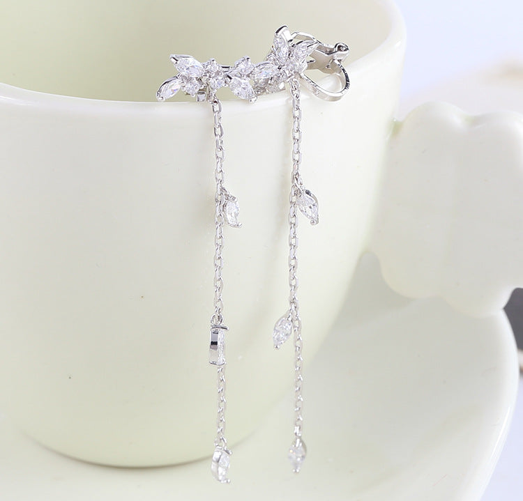 S925 Sterling Silver Ins Luxury Square Diamond Inlaid Chain Tassel Earline