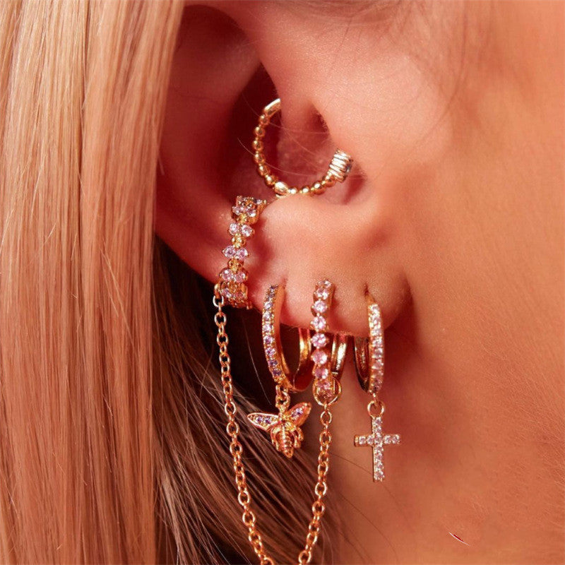 Crystal Hoop And Gold Chain Are Connected With Matching Cuff Earrings
