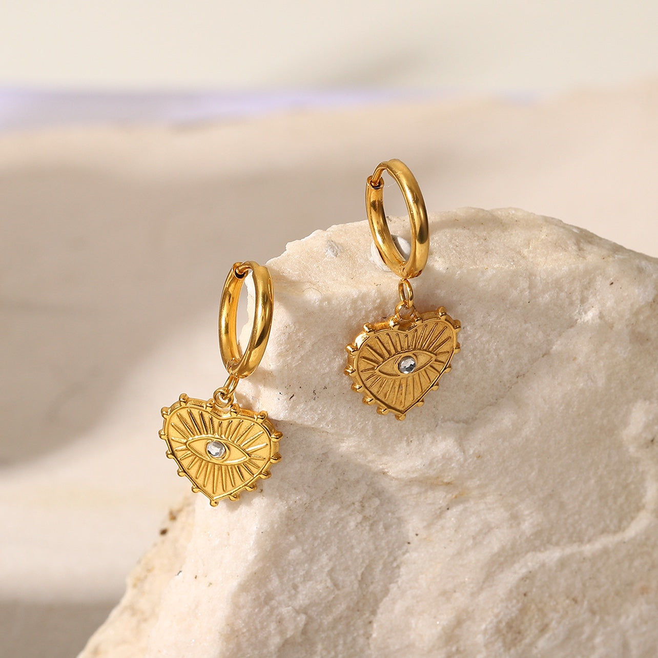 Devil's Eye Earring Peach Heart Embedded Diamond