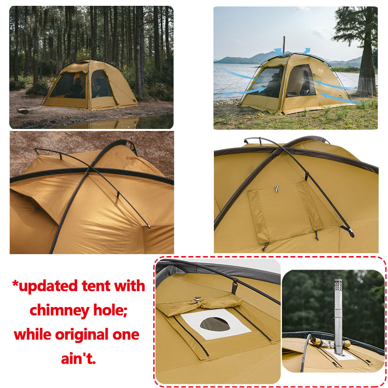 The DUNE 7.6 Dome Tent stands out for its combination of lightweight design, robust construction, and versatile functionality. The high-quality materials provide excellent waterproofing and UV protection, while the double-layer design enhances insulation and airflow. The tent's spacious layout and easy setup make it a practical choice for families and small groups. Additionally, the upgraded version includes a fireproof chimney hole, adding safety and convenience for cooking and heating.Enhance Your Outdoor Experience