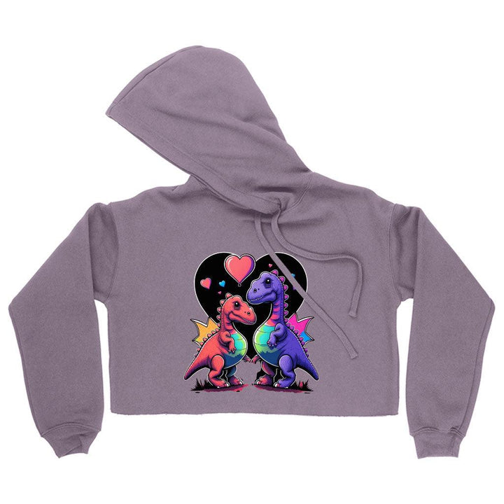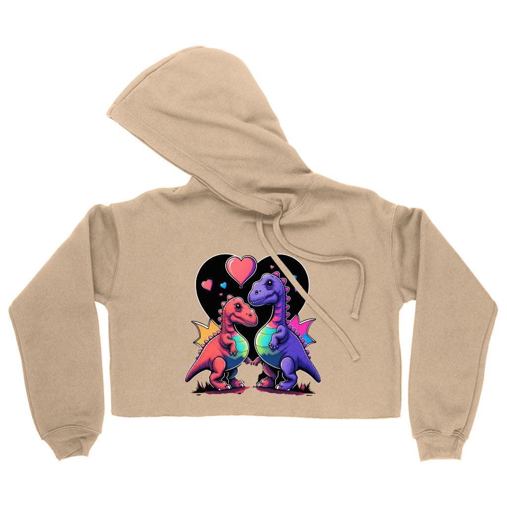 Animal Print Women's Cropped Hoodie - Dinosaur Art Cropped Hoodie - Themed Hooded Sweatshirt