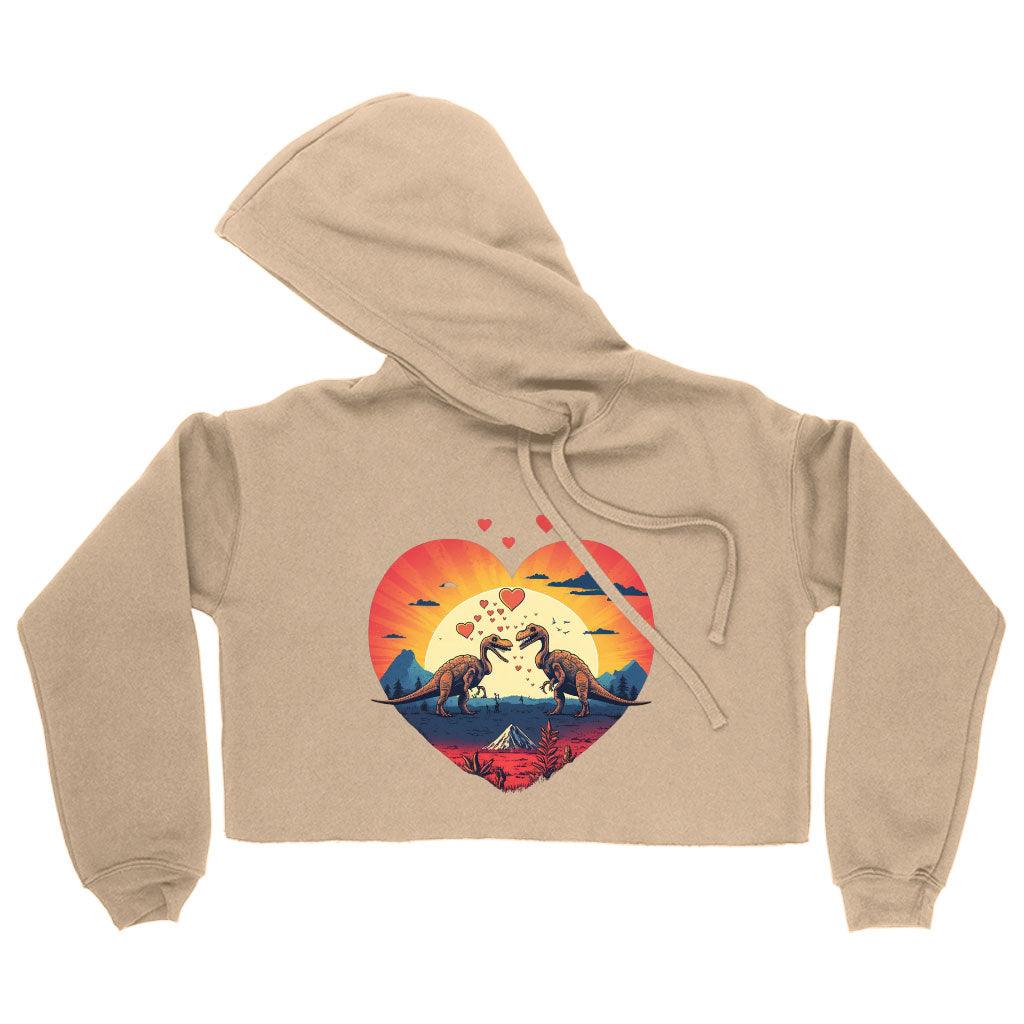 Cartoon Women's Cropped Hoodie - Dinosaur Themed Cropped Hoodie - Unique Hooded Sweatshirt