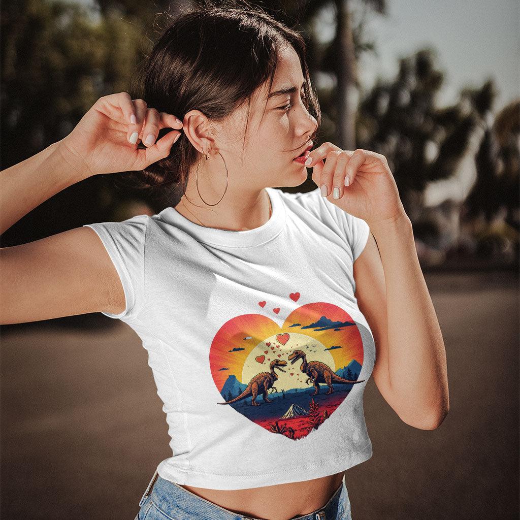 Looking for something unique in a cropped T-shirt? Check out Dinosaur Themed Women's Cropped T-Shirt. This shirt is form-fitting and has a silhouette that will show off your figure. Whether you're pairing it with jeans or shorts, Unique Women's Cropped T-Shirt is sure to turn heads.
