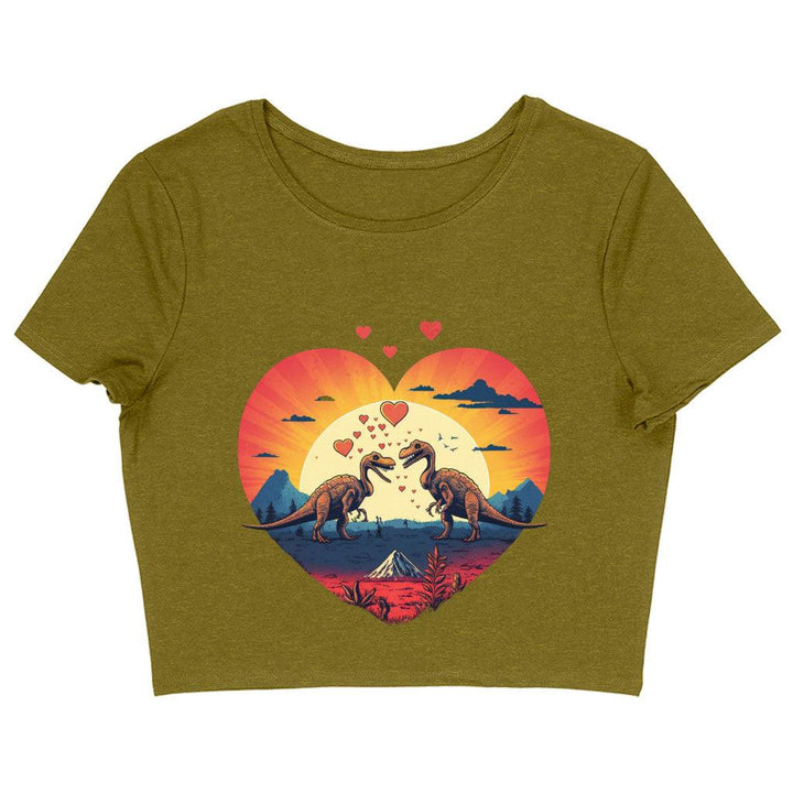 Cartoon Women's Cropped T-Shirt - Dinosaur Themed Crop Top - Unique Cropped Tee