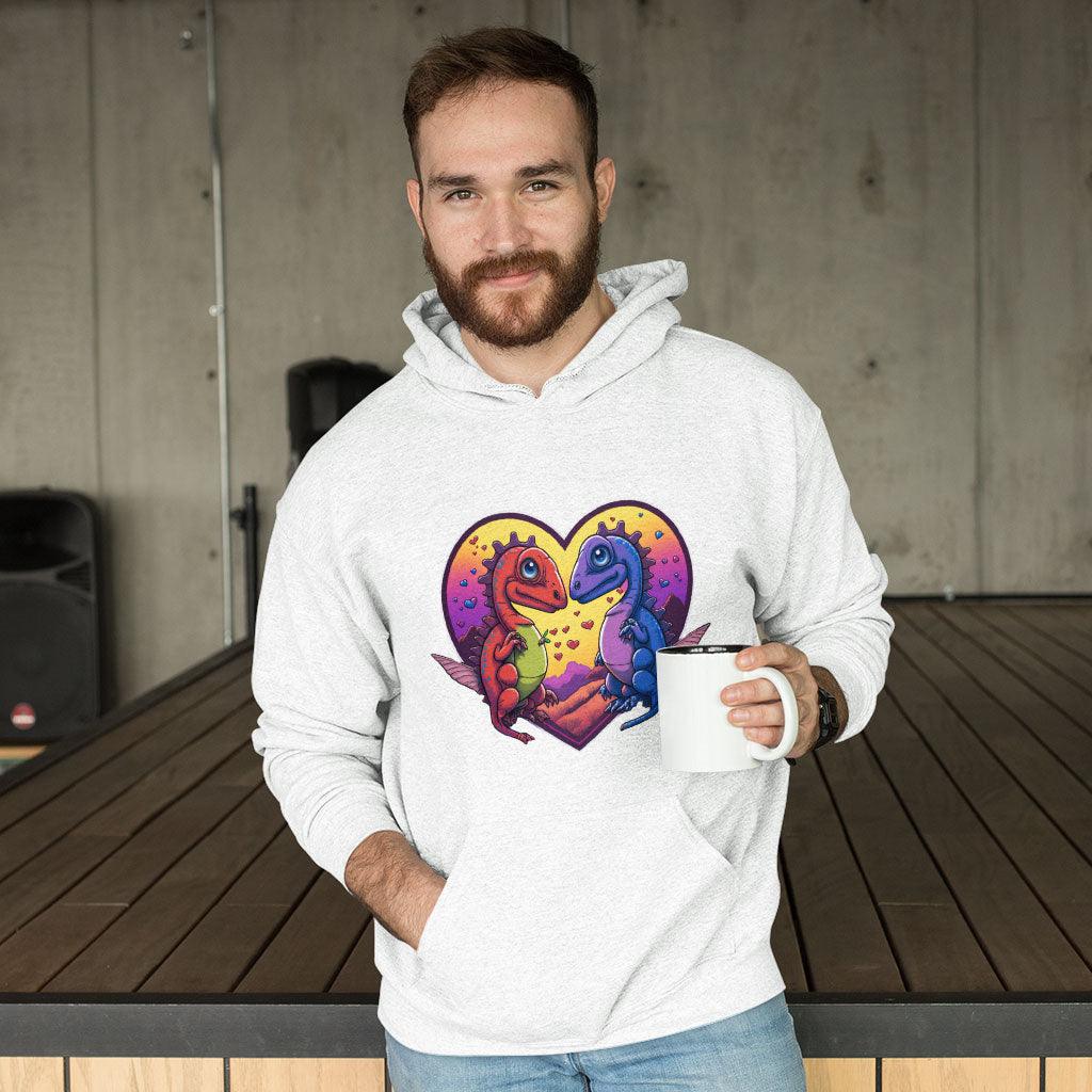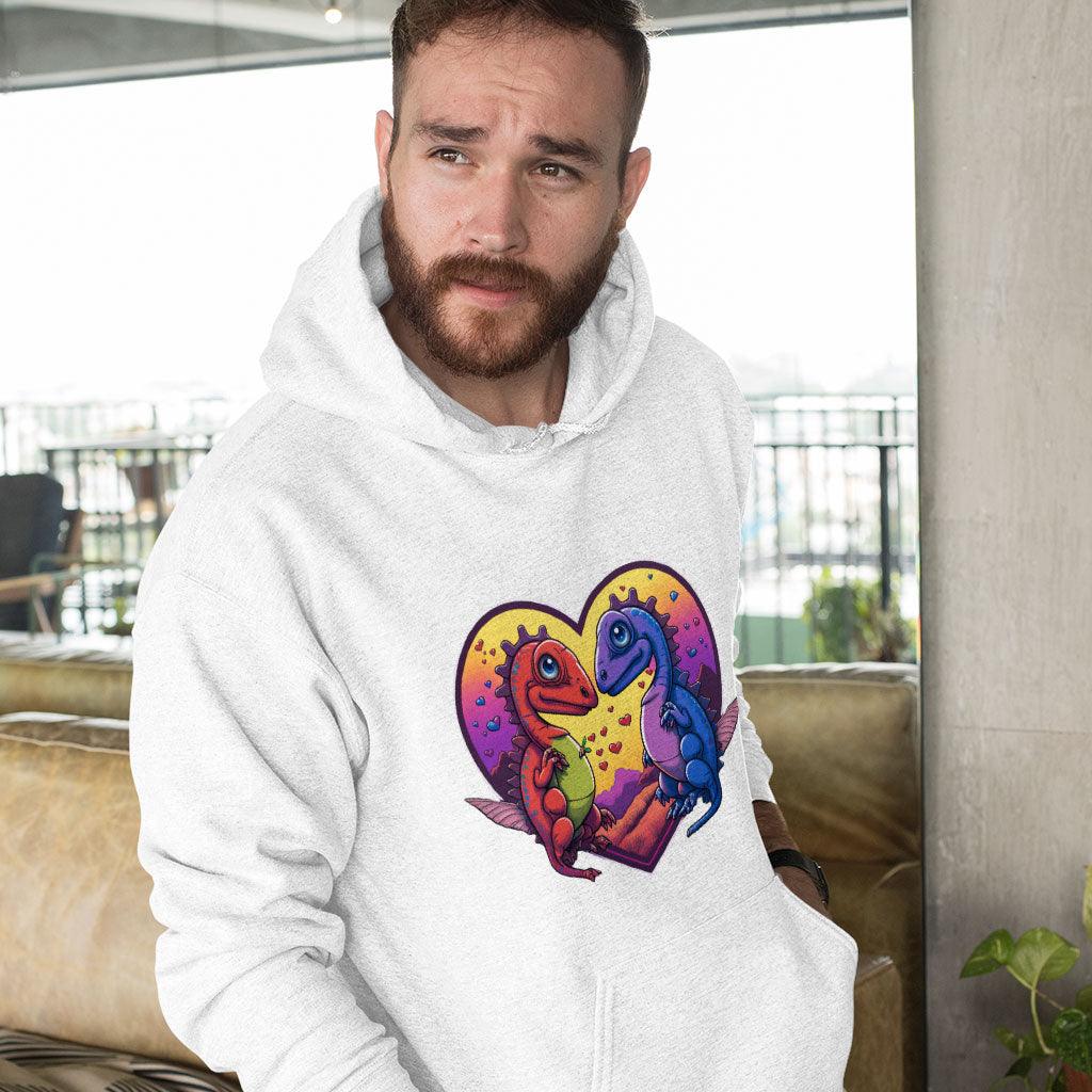 Dinosaurs in Love Hooded Sweatshirt - Art Hoodie - Unique Hoodie