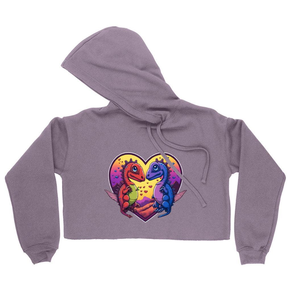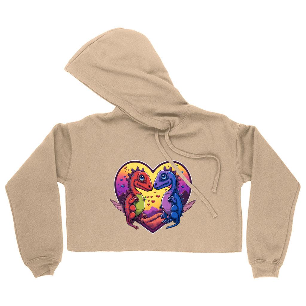 Dinosaurs in Love Women's Cropped Hoodie - Art Cropped Hoodie - Unique Hooded Sweatshirt