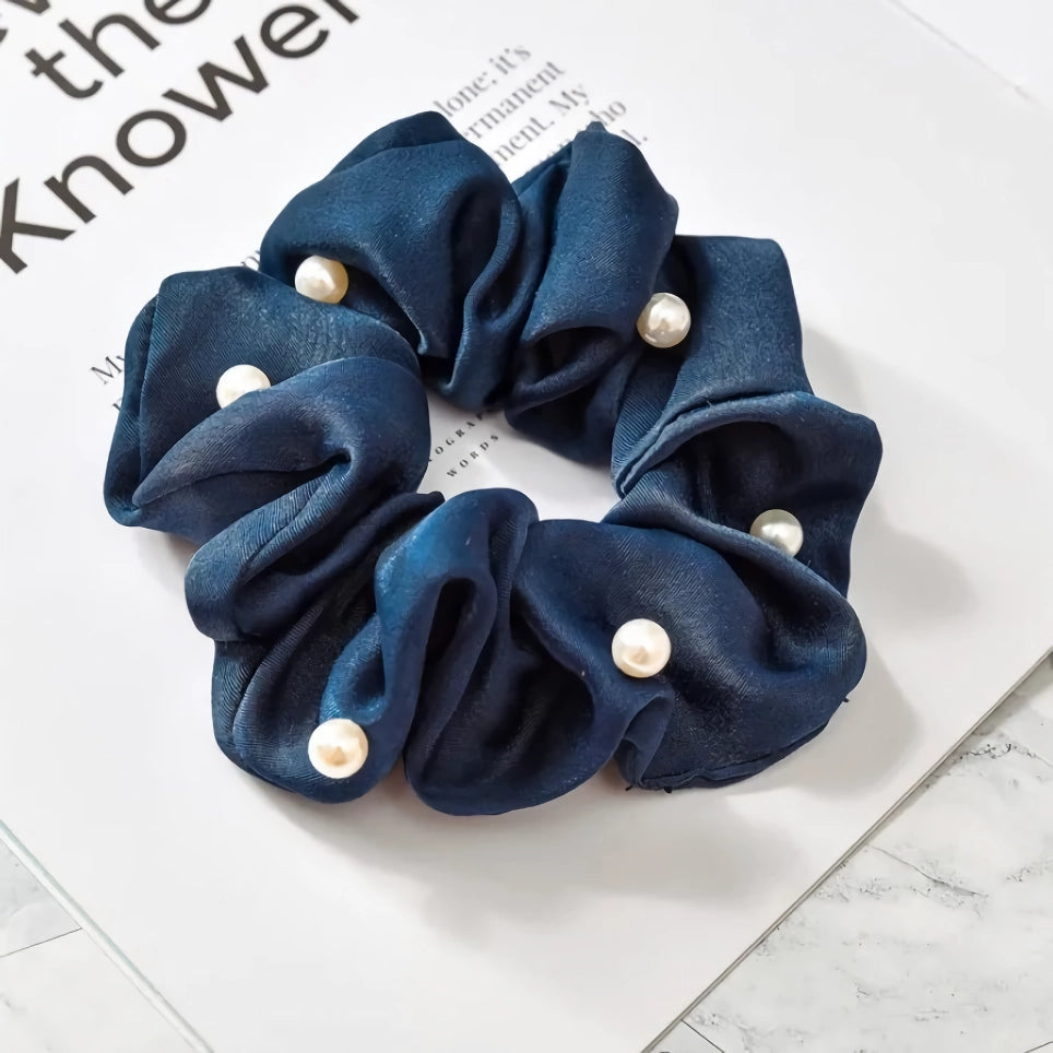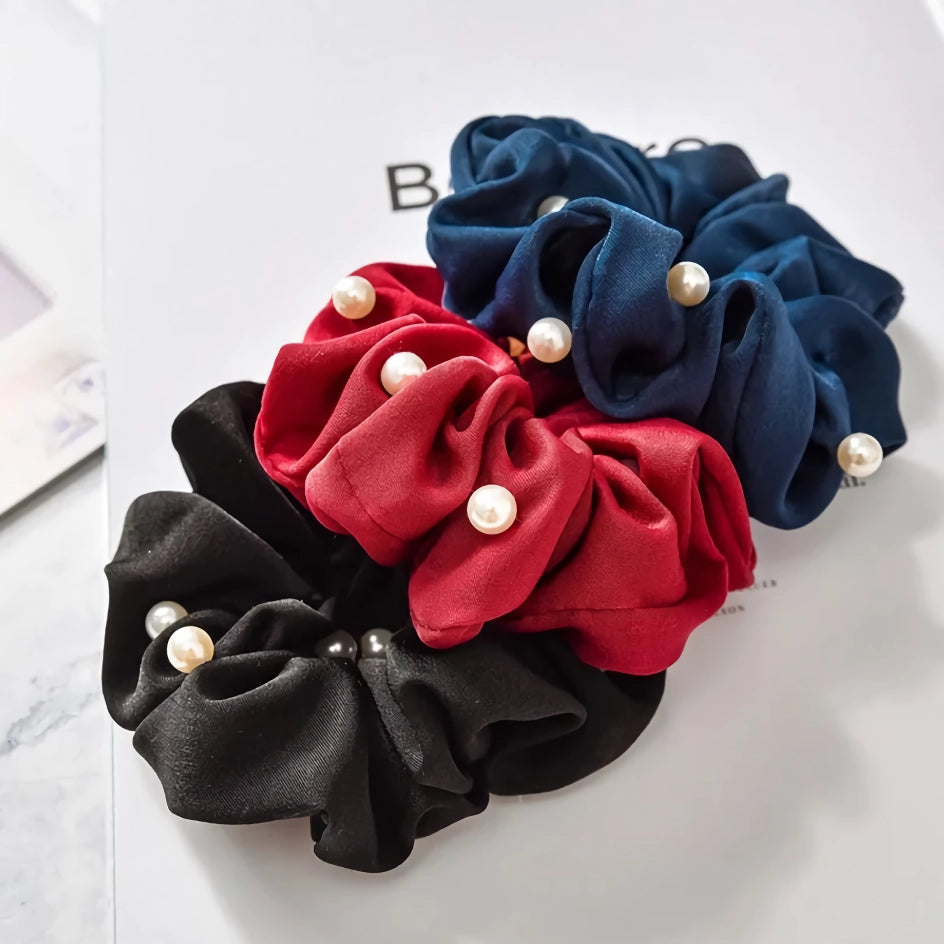 Elevate Your Look with Our Satin Silk Pearl Hair Scrunchies