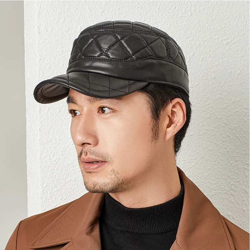 First Layer Sheepskin Hat Men's Rhombus Dome Peaked Cap