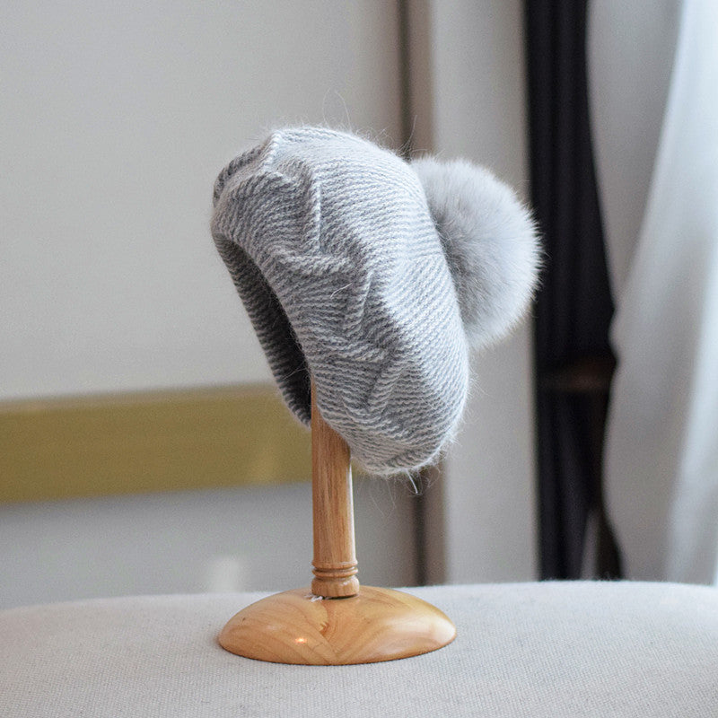 Warm Double Layer Hemp Pattern Octagonal Rabbit Fur Beret Children