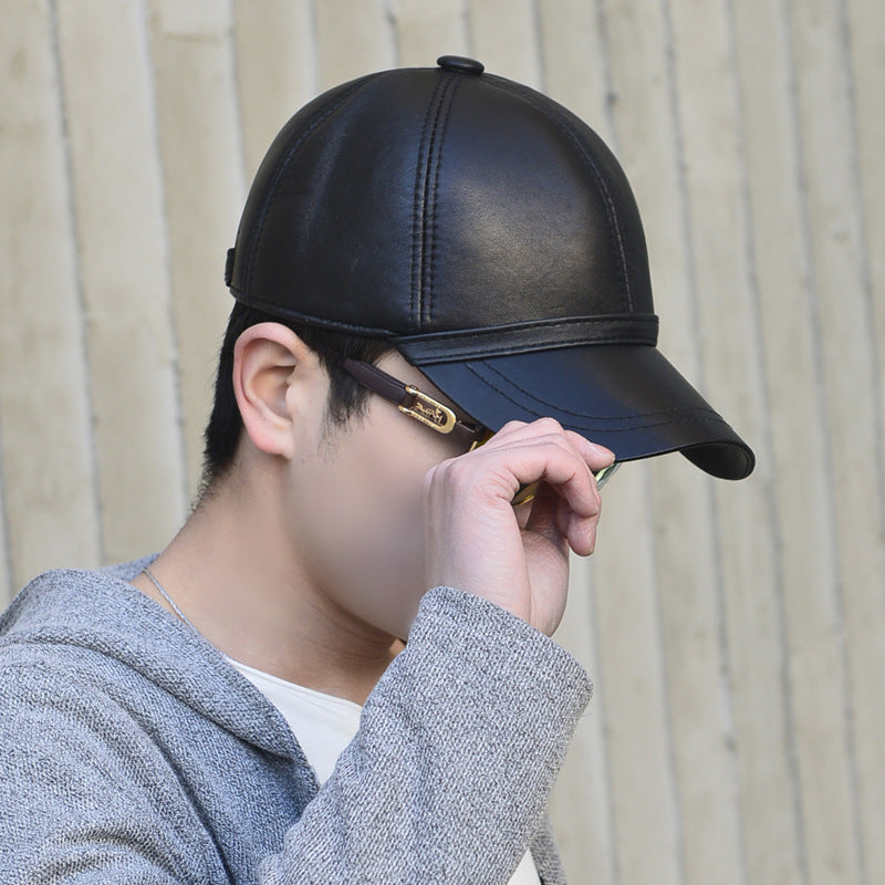 Leather Hat Autumn And Winter Men's Sheepskin Outdoor Sun-proof Leather Baseball Cap