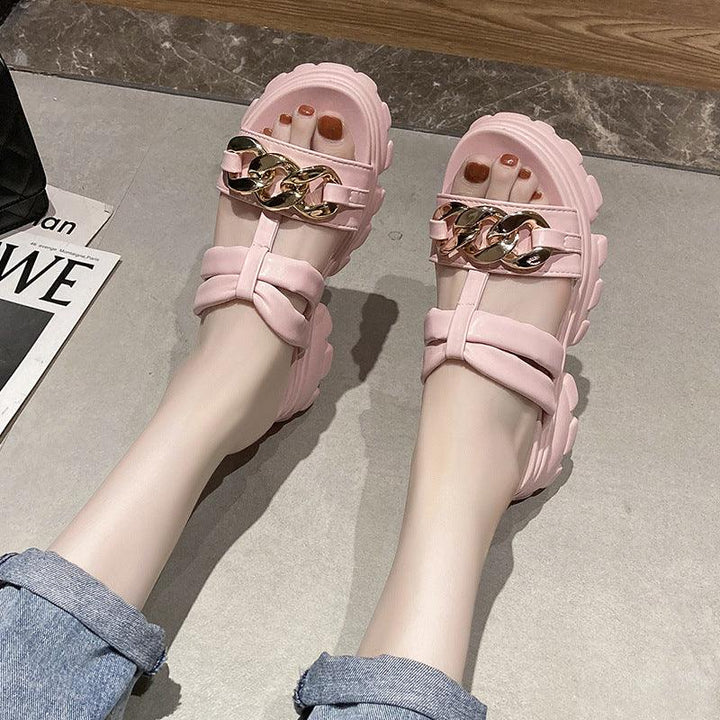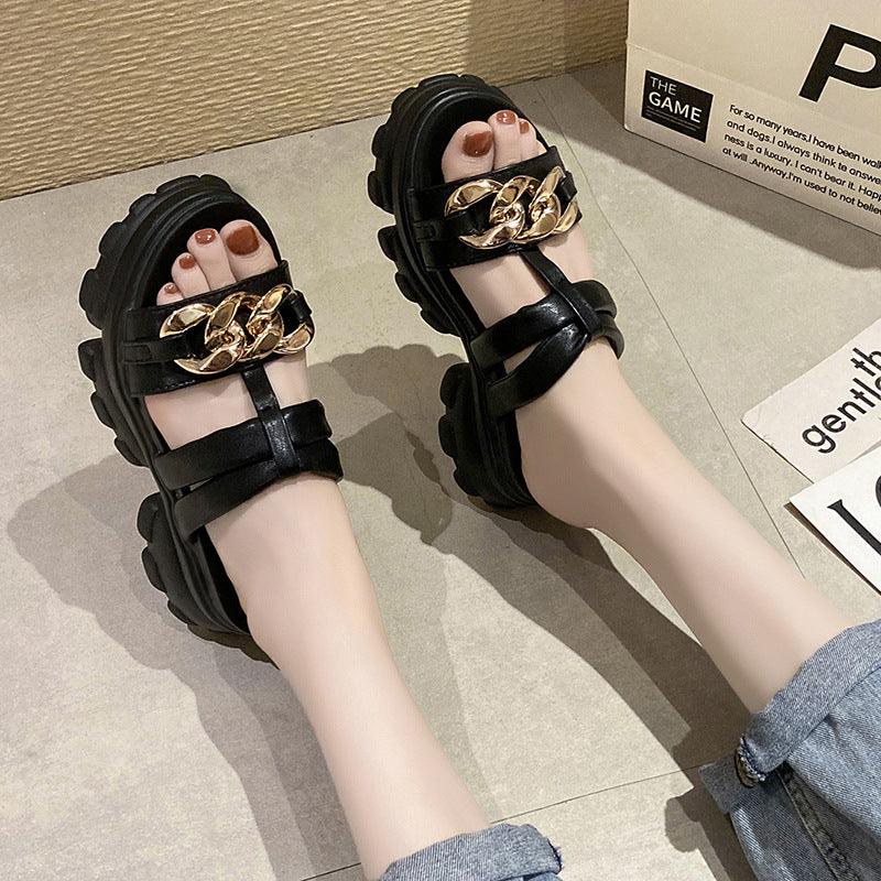 2021 summer new leather slippers slope with thick bottom platform sandals sandals female female beach shoes word - MRSLM