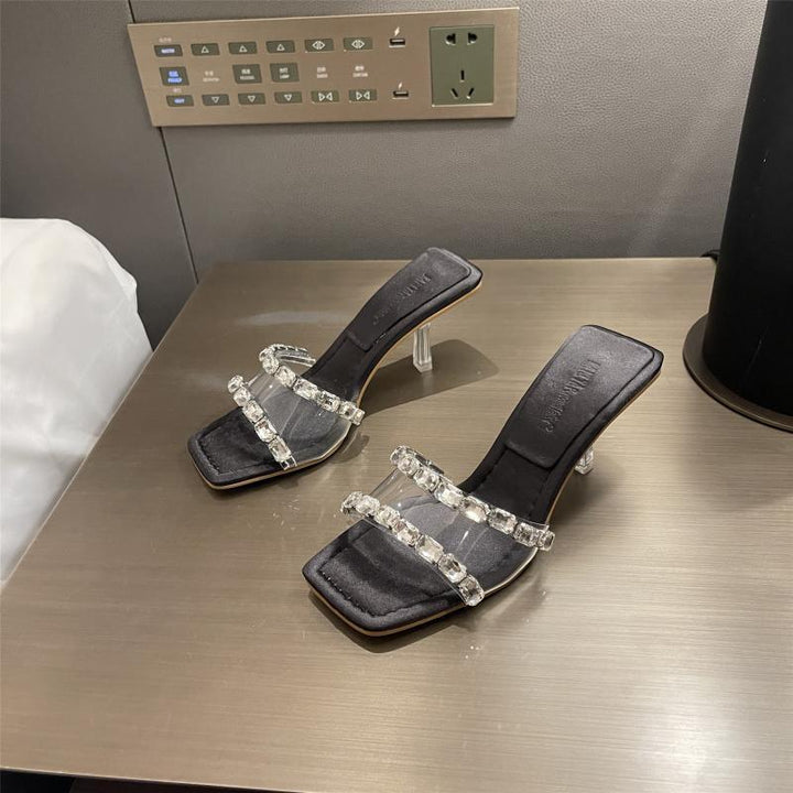 Women's Rhinestone Strap Sheer High Heel Sandals