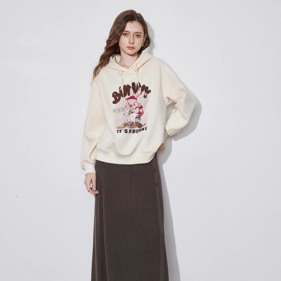 Women’s Rabbit Print Hooded Pullover - Casual Sweatshirt