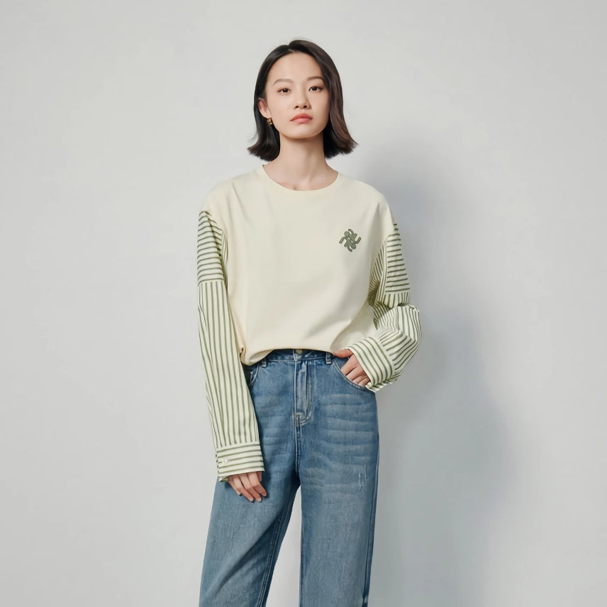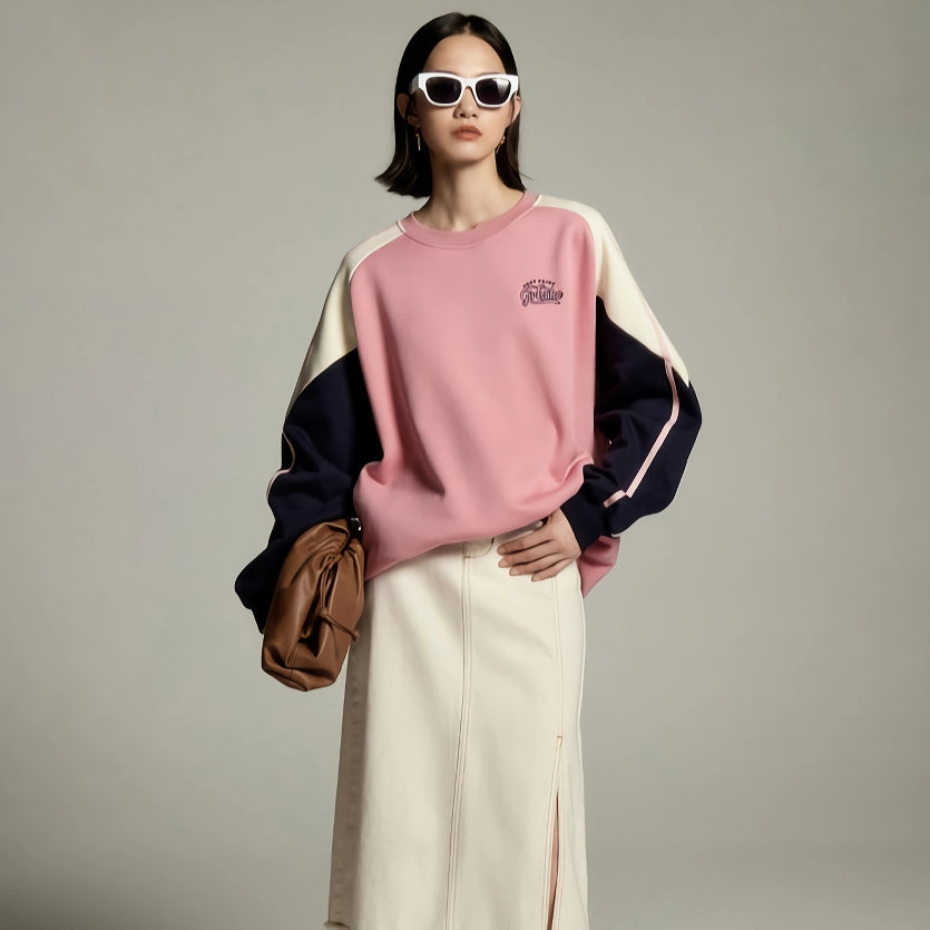 Women’s Contrast Color Patchwork Pullover - Spring Sweatshirt