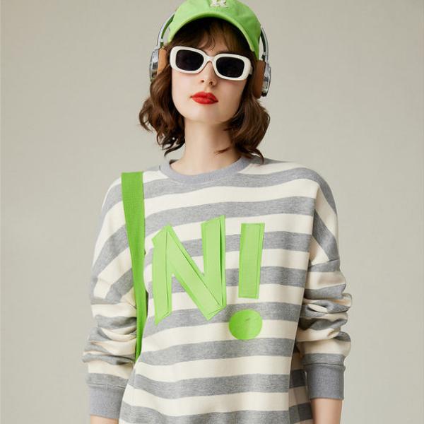 Striped Letter Print Sequin Embroidered Sweatshirt