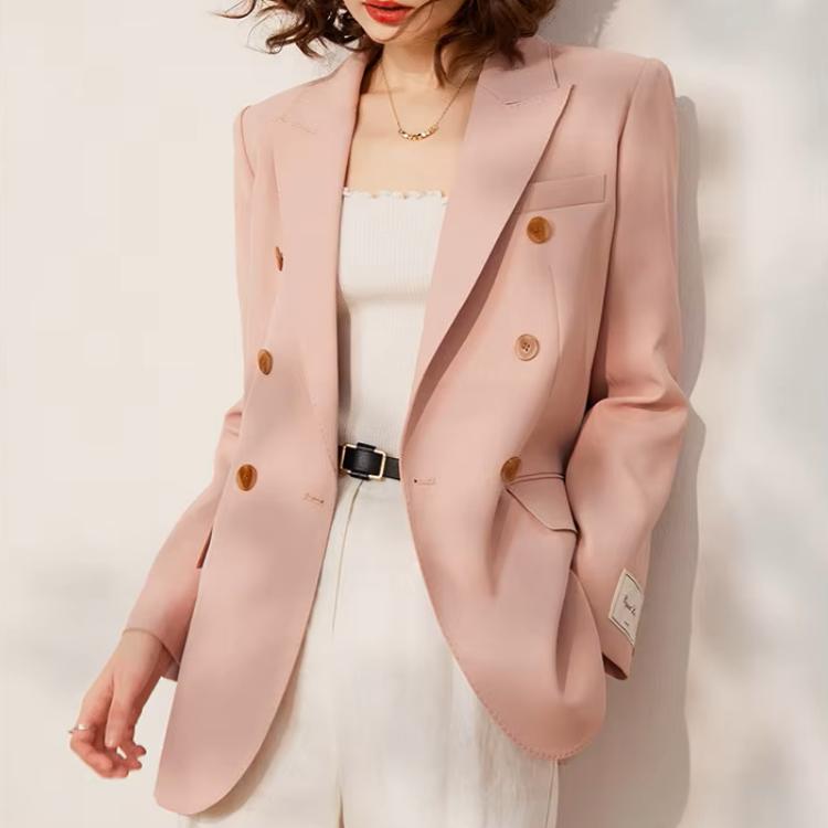 Spring Pink Double Breasted Blazer for Women - Stylish Office Suit Jacket