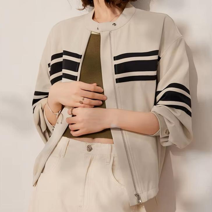 Spring Women's Loose Fit Striped Jacket with Contrast Colors