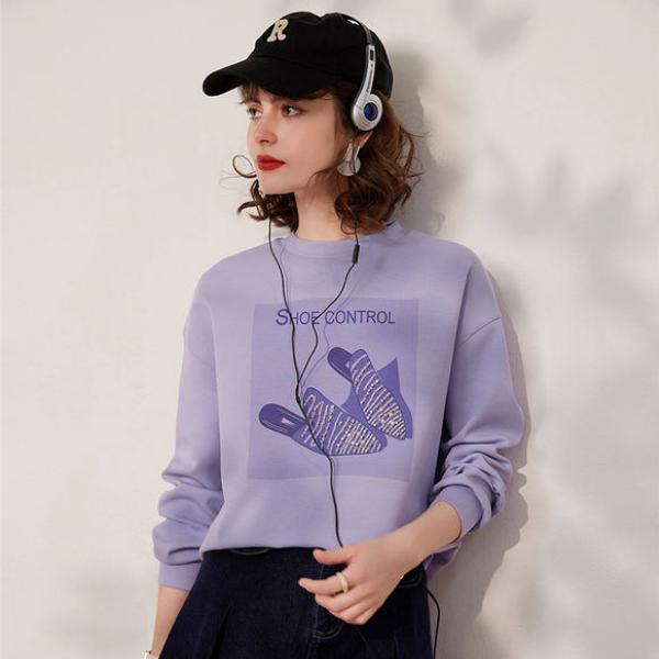 Casual Spring Print Beaded Sweatshirt - Loose Fit Pullover