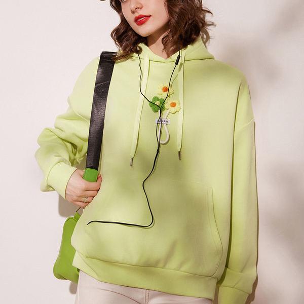 Casual 3D Plush Flower Pullover Hoodie - Loose Fit Long Sleeve Sweatshirt