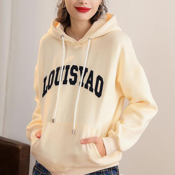 Women’s Fleece Embroidered Splicing Hooded Pullover