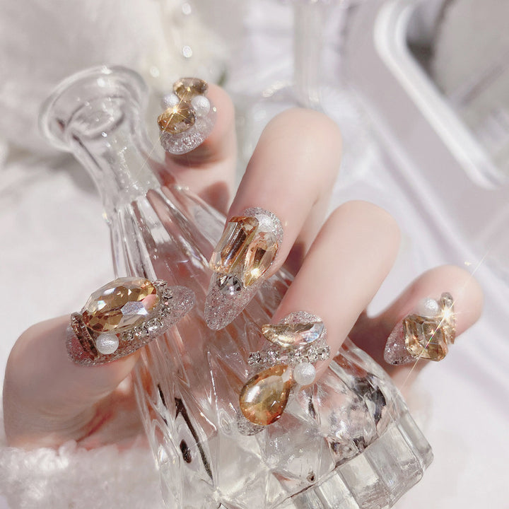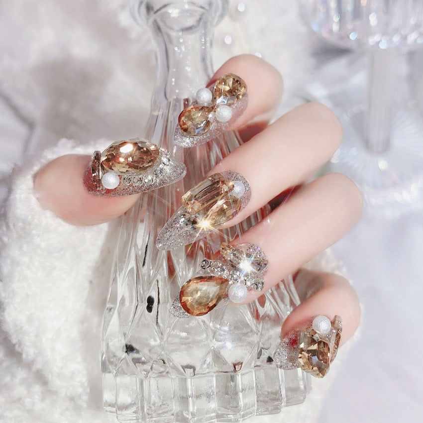 Elevate Your Nail Game with Luxury Glitter Crystal False Nails