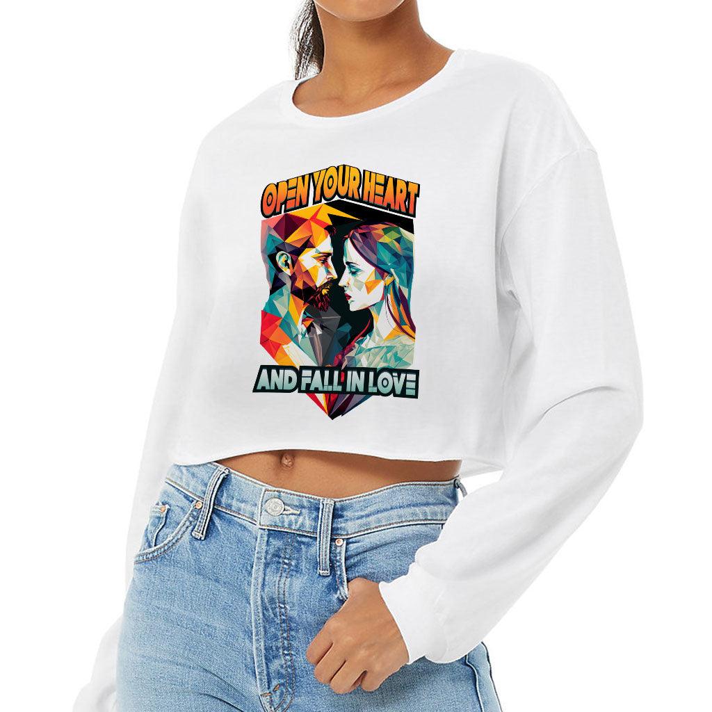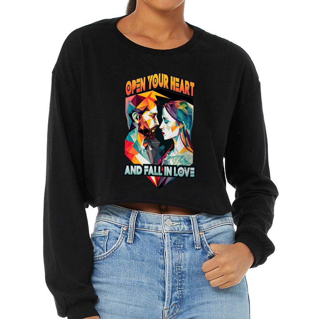Fall in Love Cropped Long Sleeve T-Shirt - Unique Women's T-Shirt - Geometric Long Sleeve Tee
