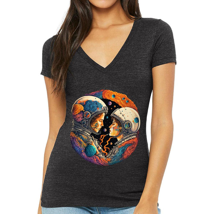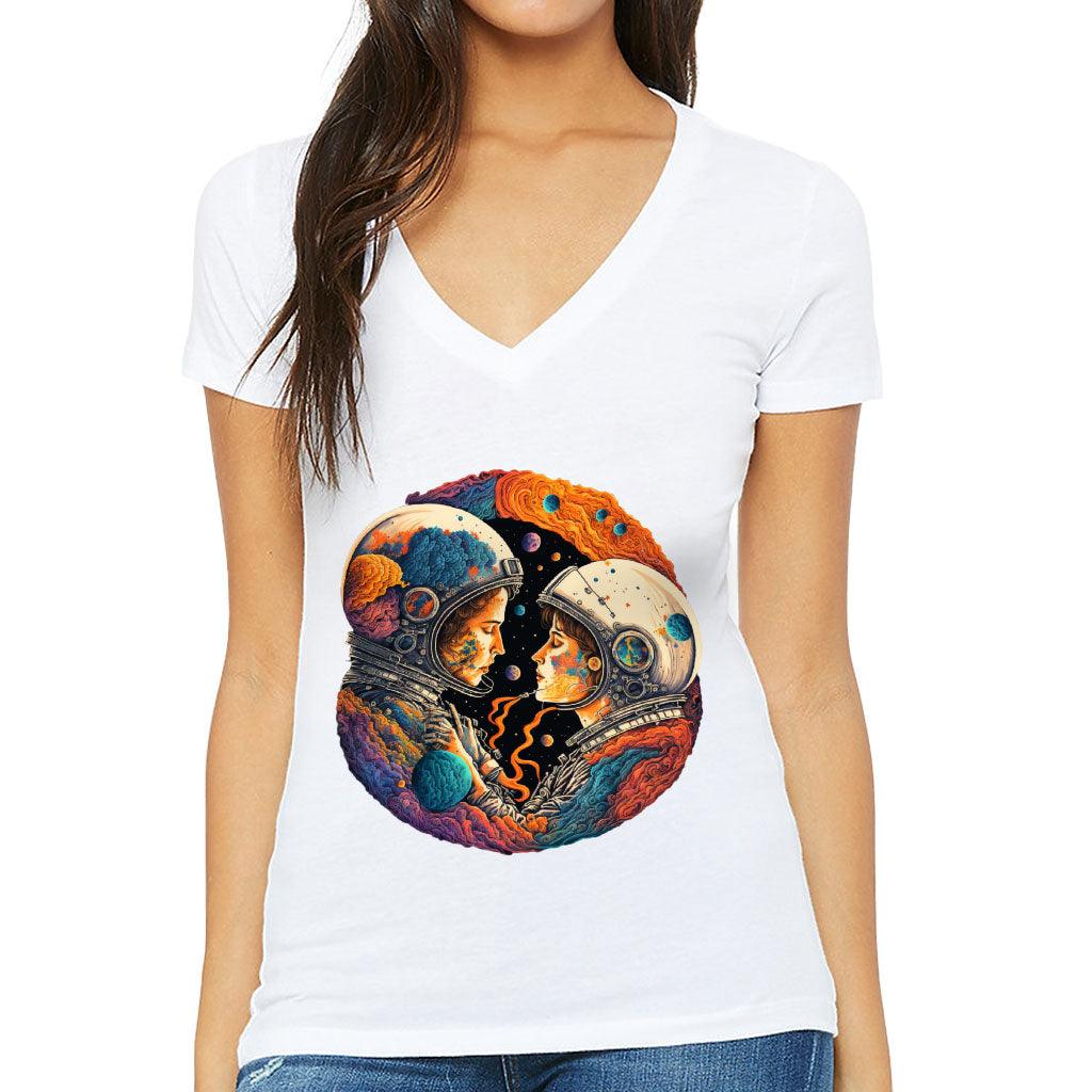 Love Astronaut Women's V-Neck T-Shirt - Fantasy V-Neck Tee - Art T-Shirt