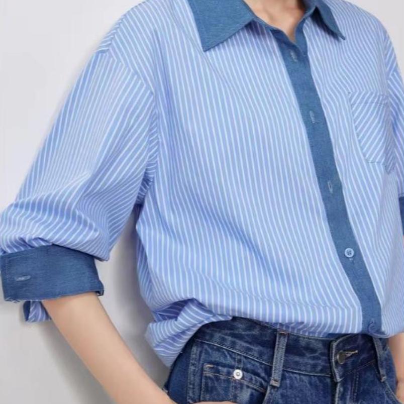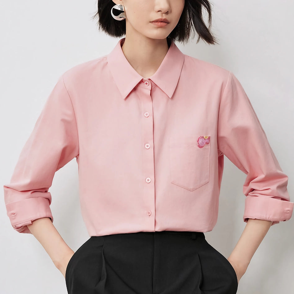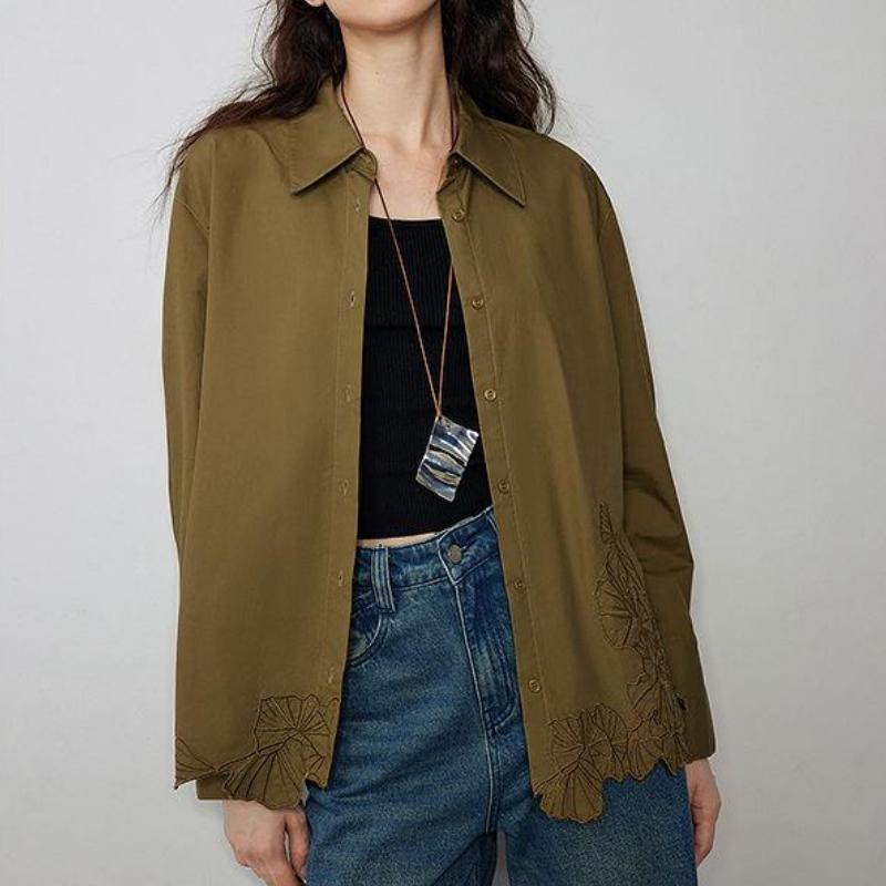 Autumn Embroidered Pure Cotton Polo Collar Denim Shirt