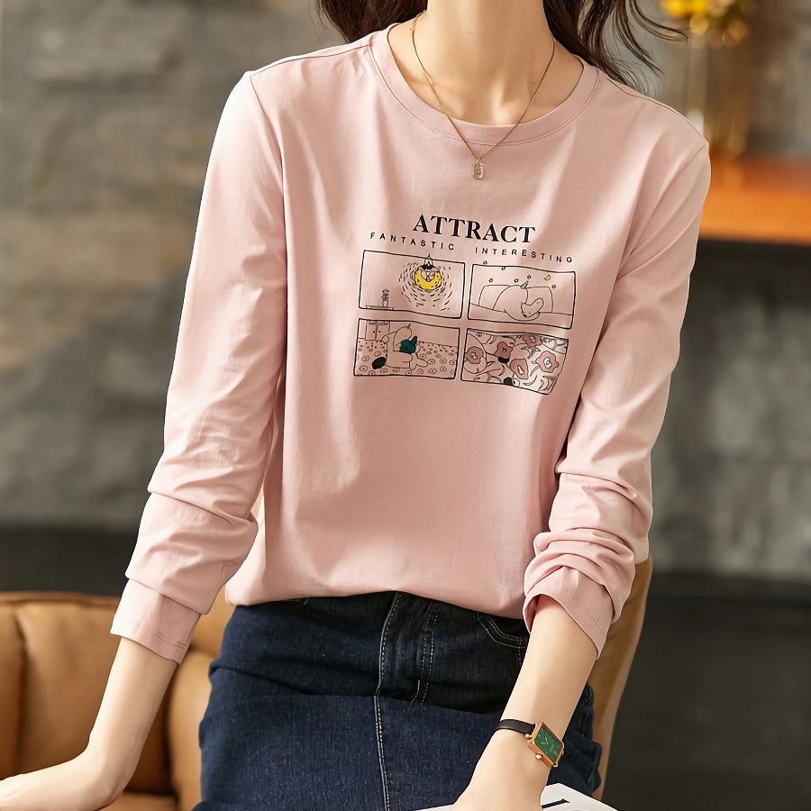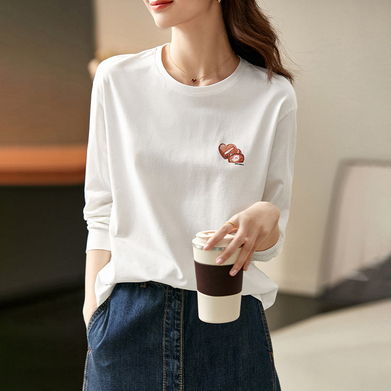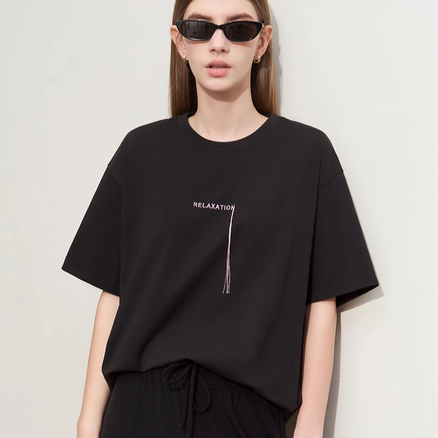 Minimalist O-Neck Embroidered T-Shirt for Women
