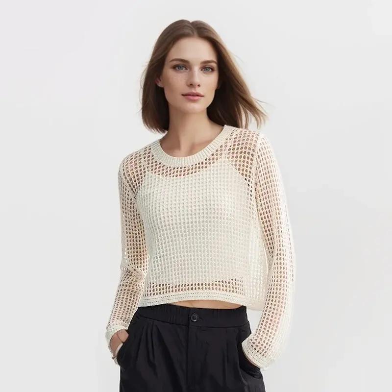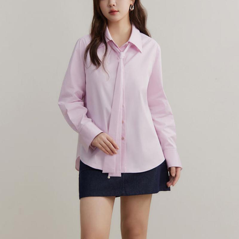Elegant Egyptian Cotton Long-Sleeved Blouse with Detachable Ribbon