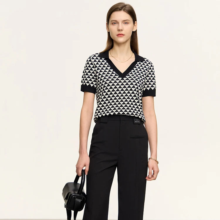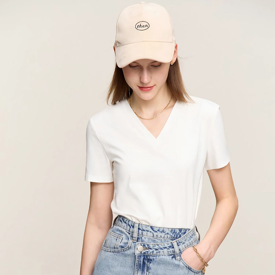 Women’s Minimalist Cotton T-Shirt with One-Line Collar