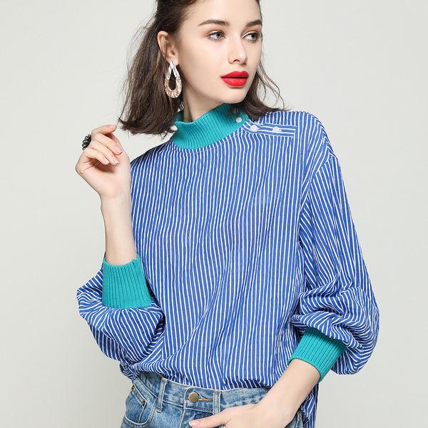 Thickened Long Sleeve Polo Neck Blouse with Pocket