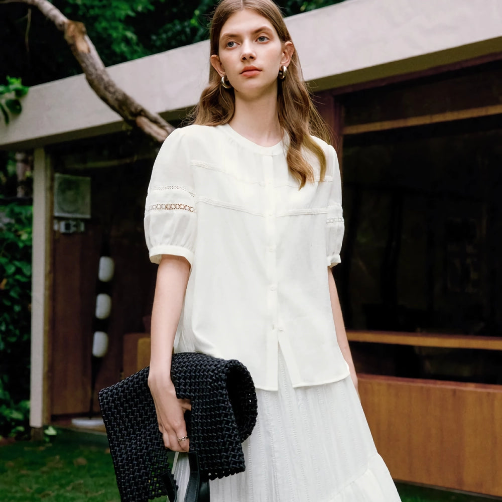 Minimalist Women's Cotton Lantern Sleeve T-Shirt