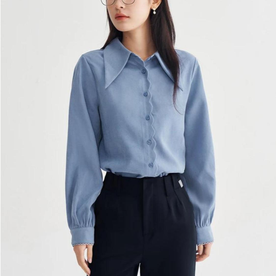 Elegant Long Sleeve Polo Neck Blouse with Petal Cuffs
