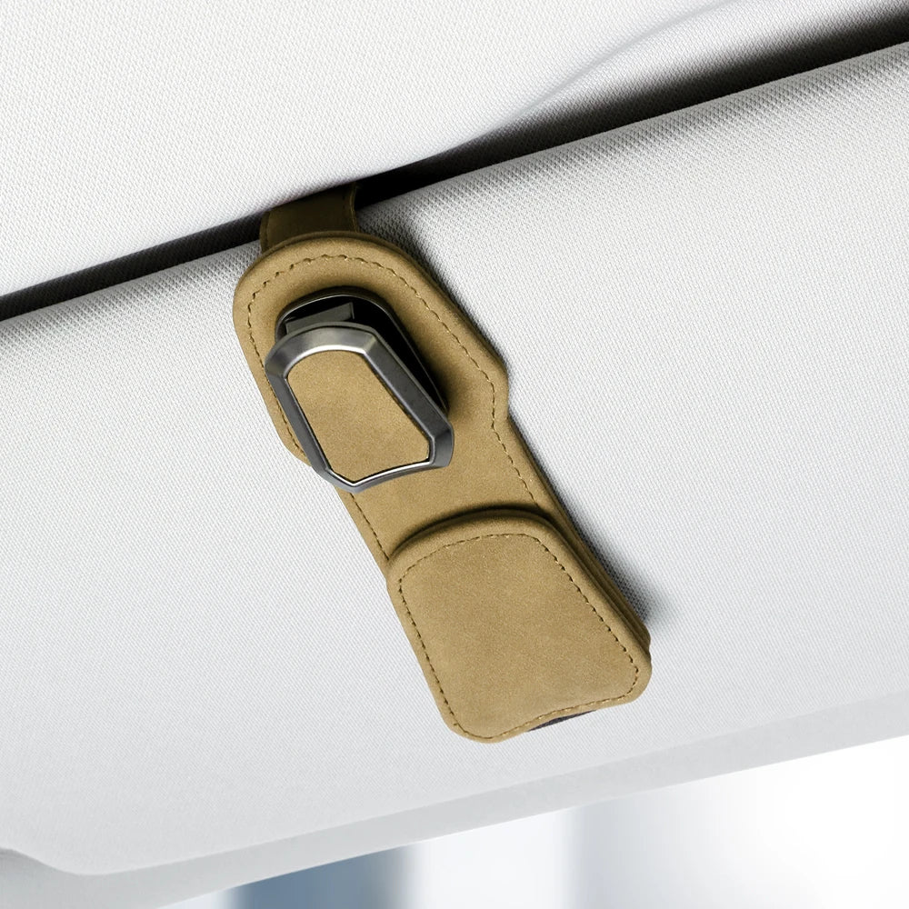 360° Rotatable Car Phone Holder with Auto-Clamp & Eyeglasses Storage