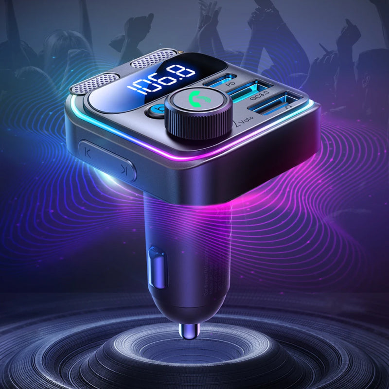 48W Bluetooth 5.3 Car FM Transmitter with Dual Mics & Fast Charging