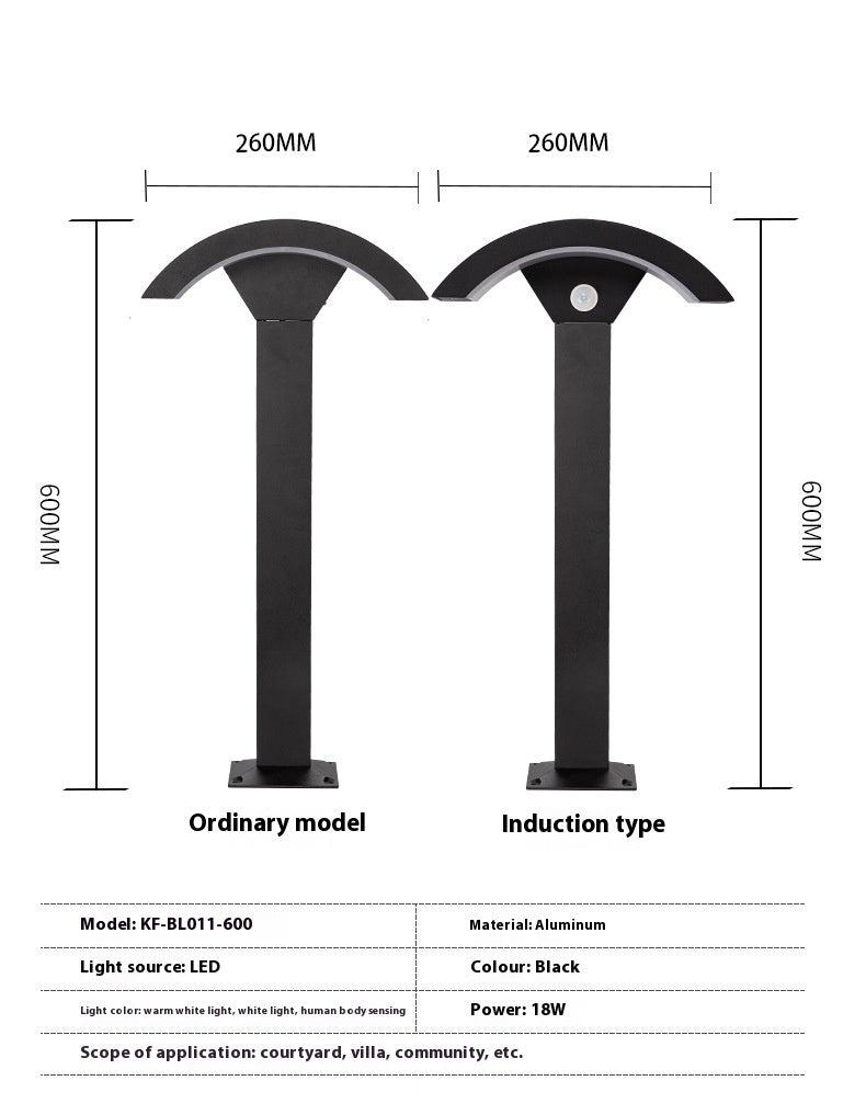 Power: 18W sand black 260 * H90mm wall lamp ordinary type, 18W sand black 260 * H90mm wall lamp induction type, 18W sand black 260 * H600mm lawn lamp ordinary type, 18W sand black 260 * H600mm lawn lamp sensor