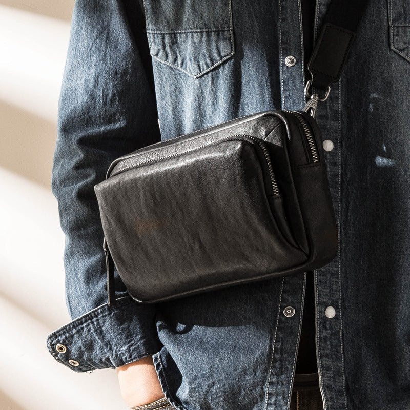 Men's First Layer Cowhide Outdoor One Shoulder Crossbody Waist Bag