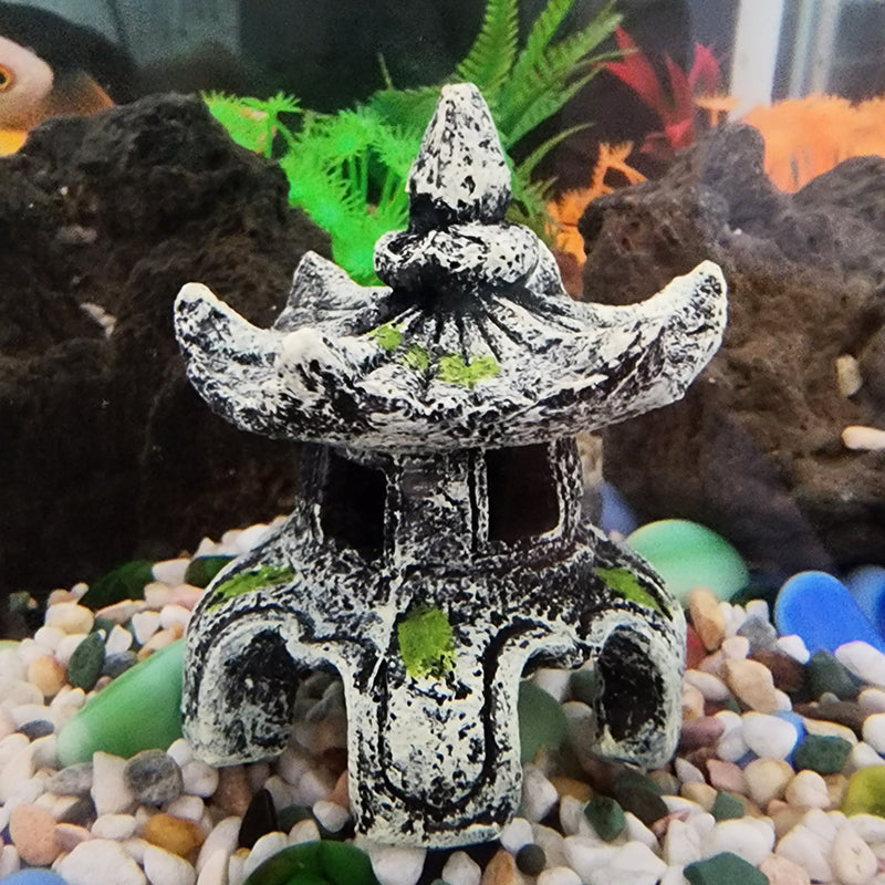 Resin Ancient Pavilion Aquarium Decoration - Rock Cave Building Ornament for Aquatic Landscaping