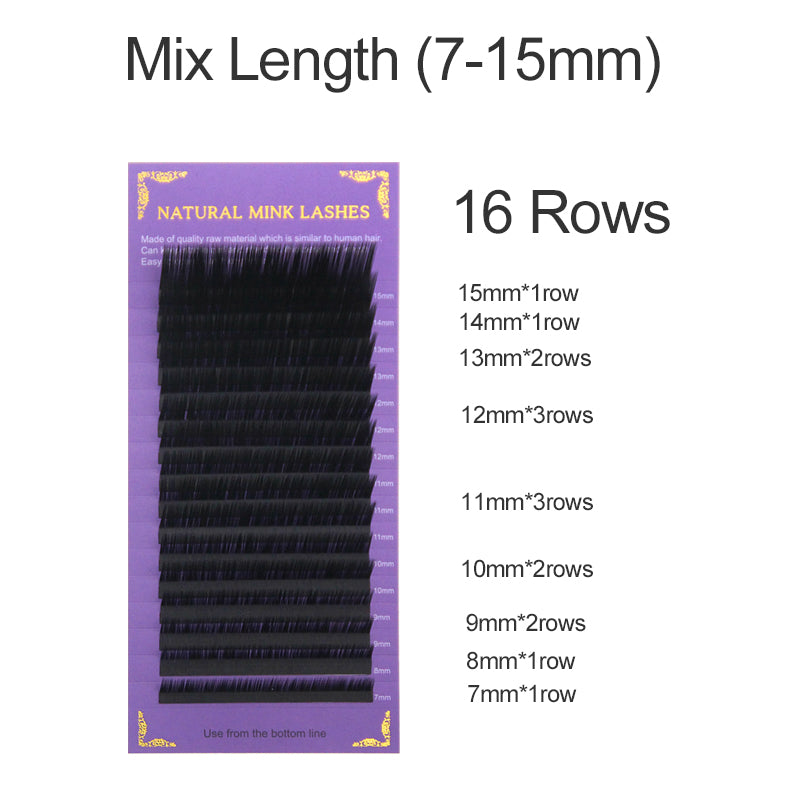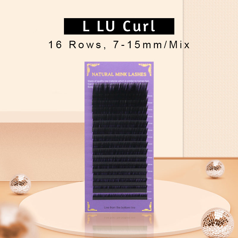 Crafted with precision and care, our eyelash extensions boast exceptional features that make them a must-have in your makeup collection. Each box contains 16 rows of lashes, available in three thickness options: 0.07mm, 0.10mm, and 0.15mm. The L and LU curls provide a natural lift and enhance the beauty of your eyes, making them appear larger and more defined.